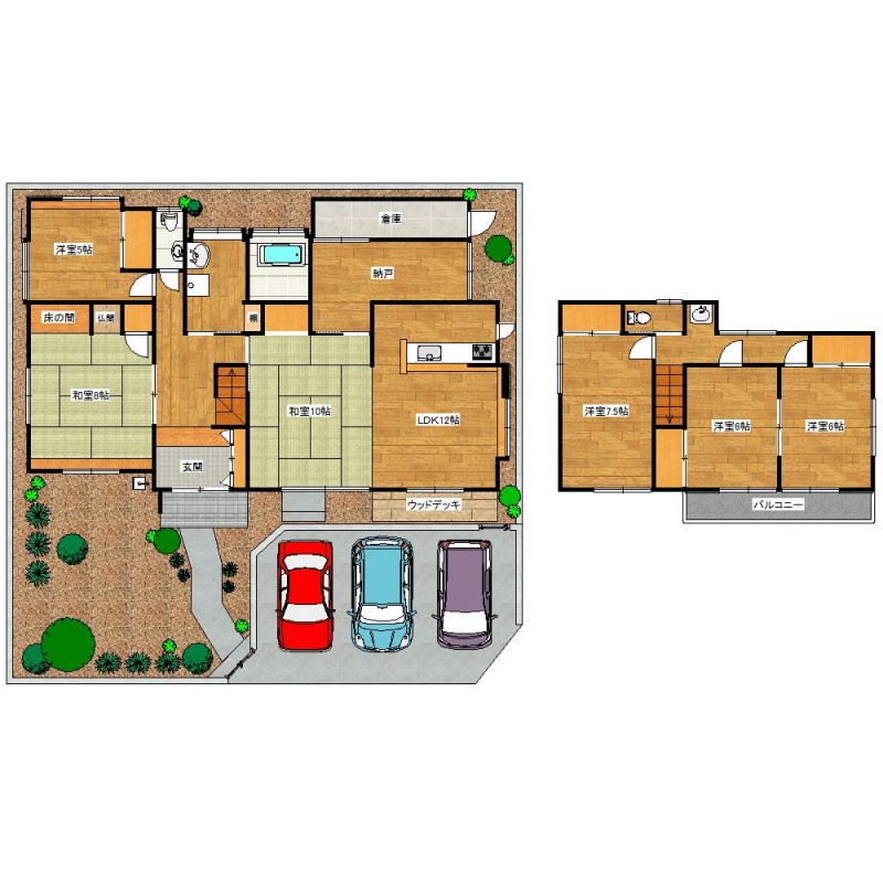 シックで落ち着いた感じの1号棟。リビング上の大きな吹抜け・WIC等収納も充実